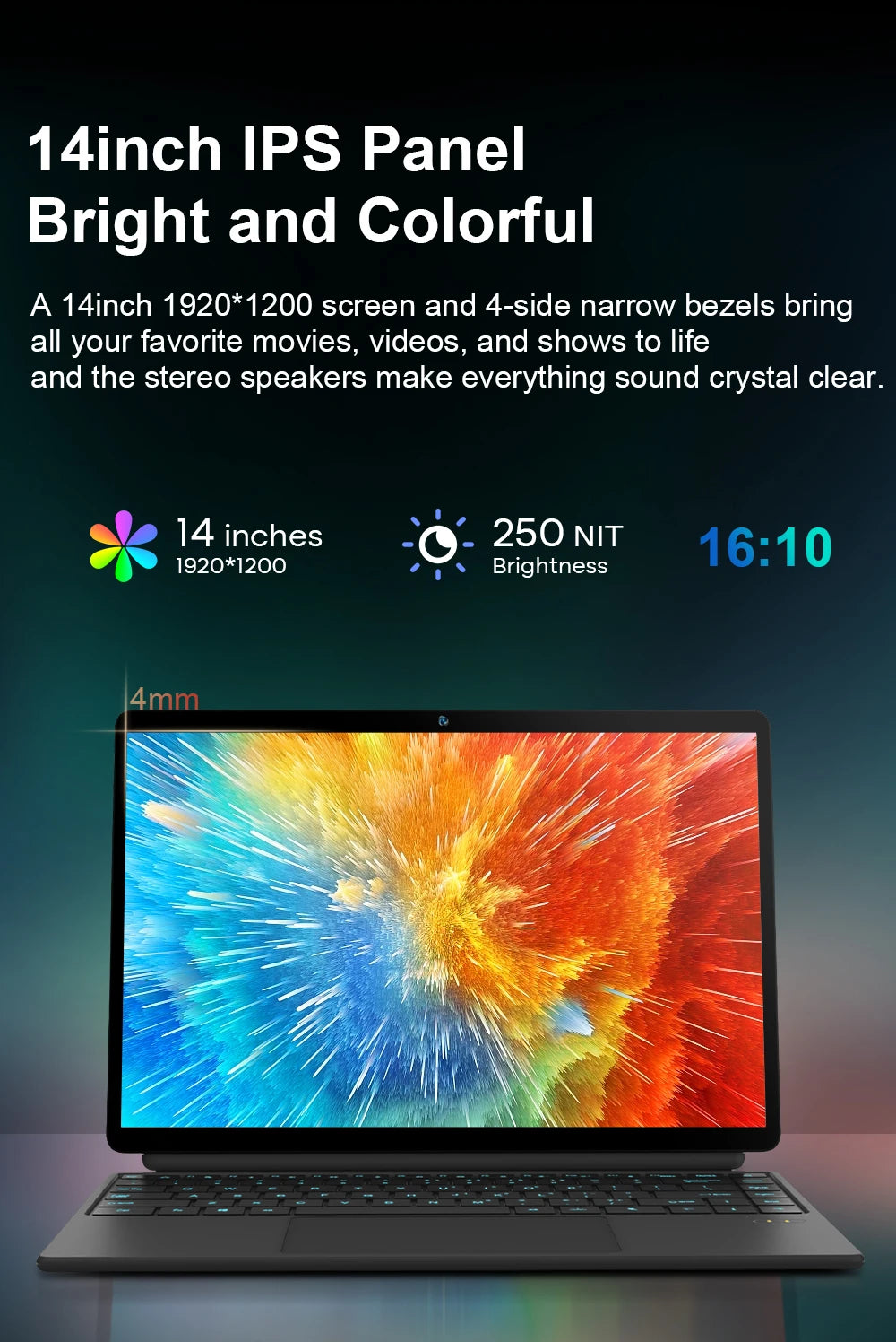 Découvrez le mini-ordinateur portable 2-en-1 avec écran tactile, la solution idéale pour allier productivité et mobilité. Doté d'un écran tactile IPS de 14 pouces avec une résolution Full HD de 1920x1200, il offre une clarté visuelle exceptionnelle et des bords fins pour une immersion totale. La charnière 360° vous permet de l'utiliser comme une tablette ou un ordinateur portable, s'adaptant à tous vos besoins.
