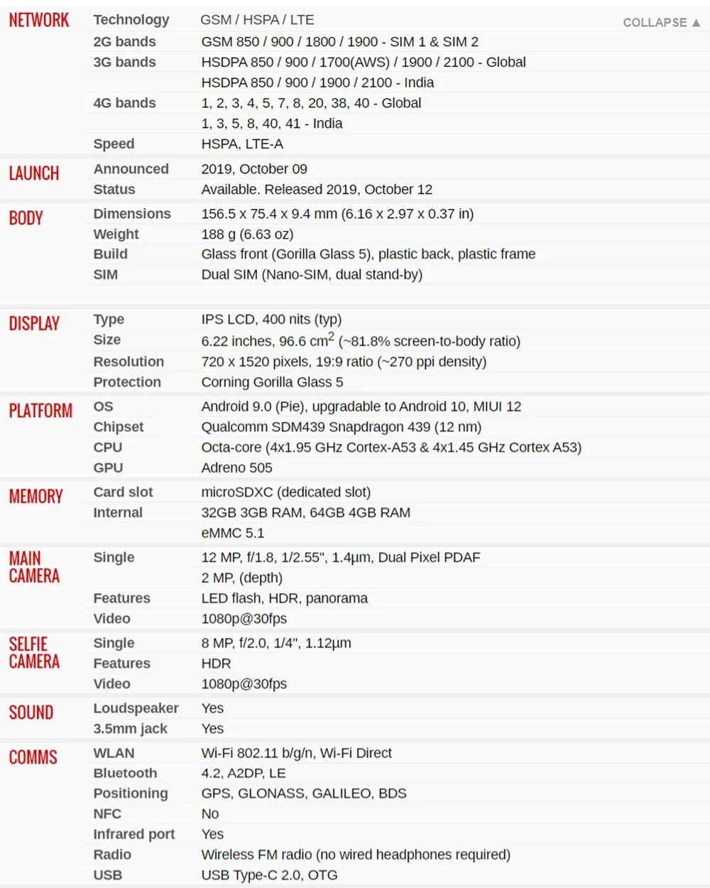 Le Xiaomi Redmi 8 est un smartphone pratique et fiable, idéal pour un usage quotidien. Avec son grand écran 6.22" HD+, son processeur Snapdragon 439 huit cœurs et sa batterie puissante de 5000 mAh, il vous accompagne toute la journée sans souci d’autonomie.