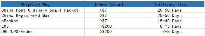 1. Nous expédions tous nos articles dans le monde entier dans les 48 heures par courrier recommandé de la poste chinoise/ePacket/china post ordinaire petit paquet/DHL/EMS.