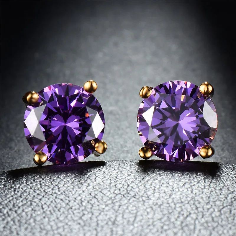 Boucles d'oreilles rondes en cristal pour femme, bijoux de mariage classiques, documents en or vintage, 4 broches, noir et violet