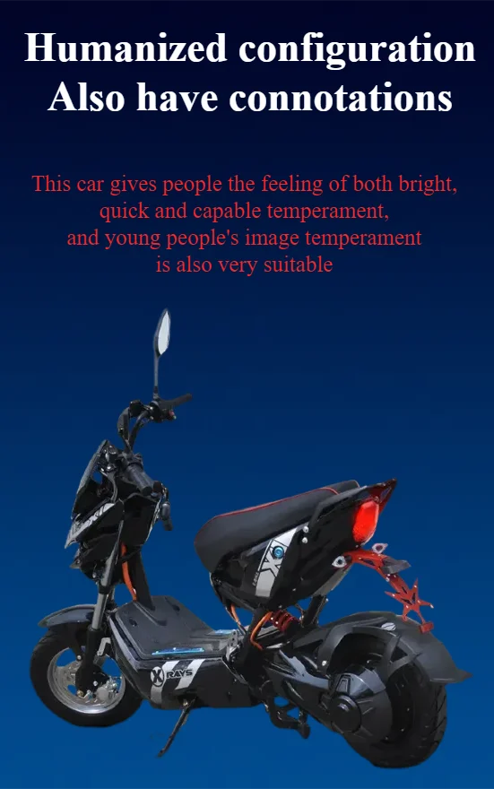 Découvrez la nouvelle génération de mobilité électrique avec notre scooter haute performance, conçue pour allier puissance, autonomie et confort. Idéale pour vos trajets quotidiens comme pour vos balades, elle séduit par son design robuste et ses caractéristiques techniques avancées.