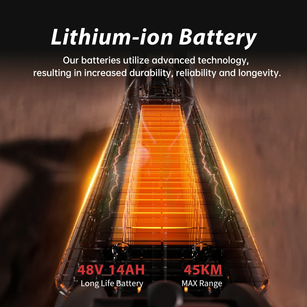 Ses pneus 9 pouces, sa batterie haute capacité 48V 10.4Ah et sa structure pliable en font un choix parfait pour les trajets quotidiens, loisirs ou déplacements urbains rapides.