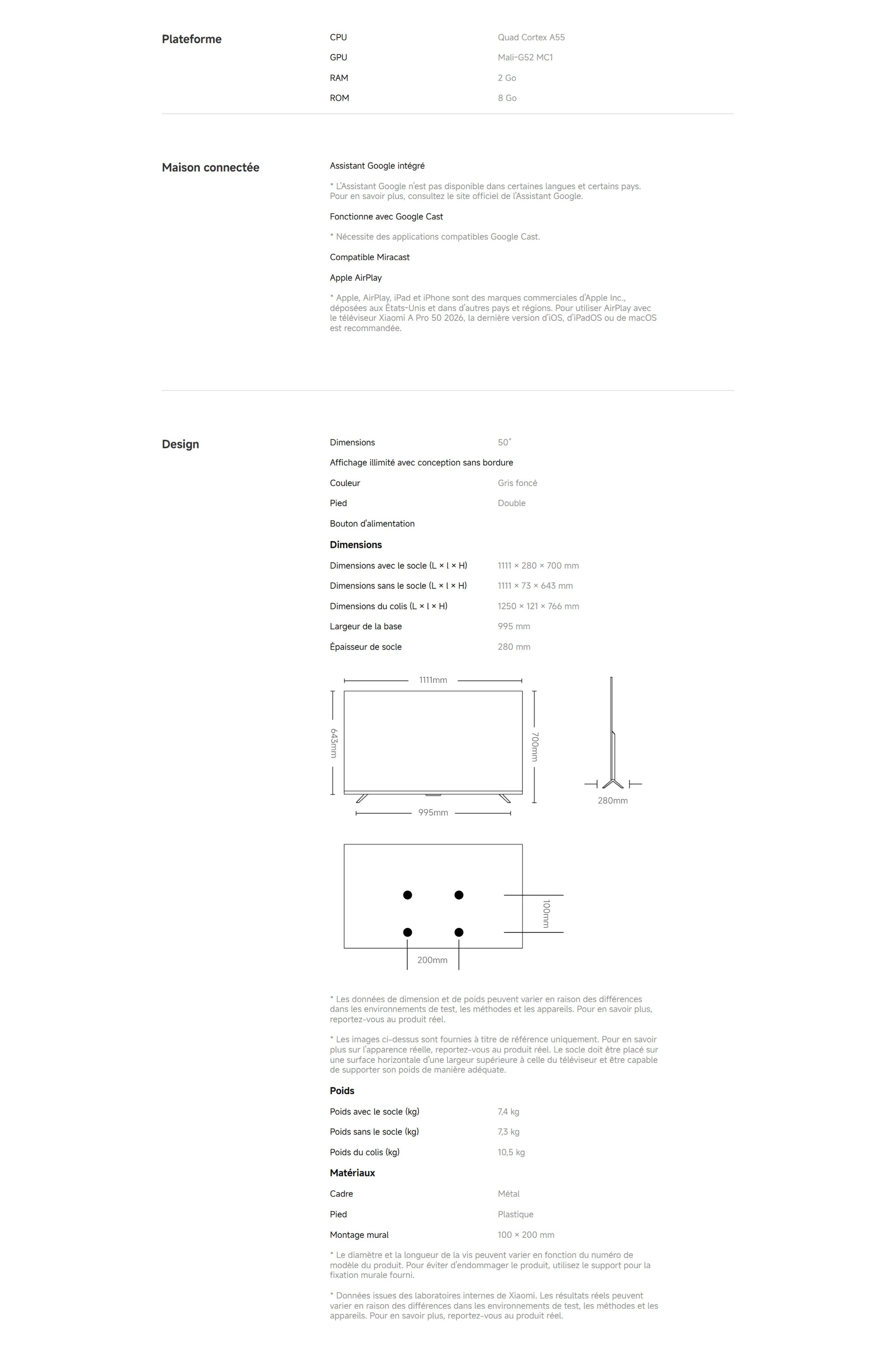 Xiaomi France | Xiaomi TV A Pro 50 2026, Écran QLED 4K, Son immersif avec Dolby Audio™, DTS:X, DTS Virtual:X, Compatible HDR10+ ,1,07 milliard de couleurs, DCI-P3 94 %